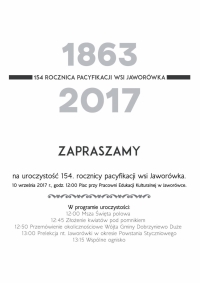 Serdecznie zapraszamy wszystkich mieszkańców Gminy Dobrzyniewo Duże na uroczystość 154. rocznicy pacyfikacji wsi Jaworówka.