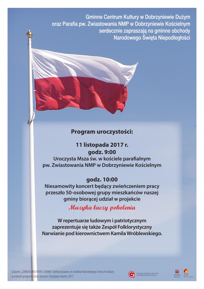 Serdecznie zapraszamy wszystkich mieszkańców gminy na uroczyste obchody Narodowego Święta Niepodległości!!!