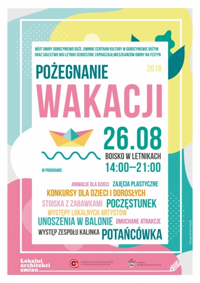 Serdecznie zapraszamy wszystkich mieszkańców gminy Dobrzyniewo Duże na imprezę pn. "Pożegnanie wakacji".