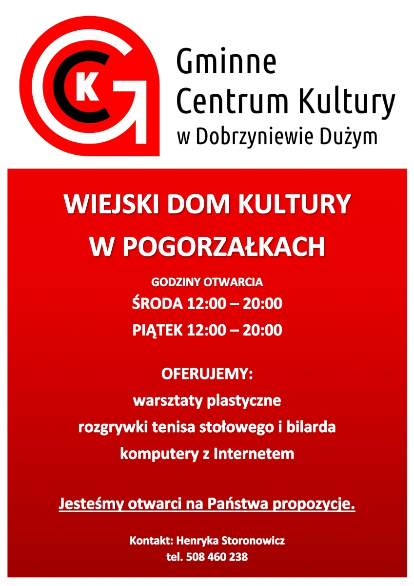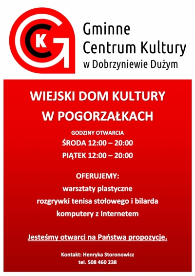 Zapraszamy do spędzania czasu w Wiejskim Domu Kultury w Pogorzałkach.