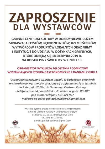 Zaproszenie dla wystawców na Dożynki Gminne
