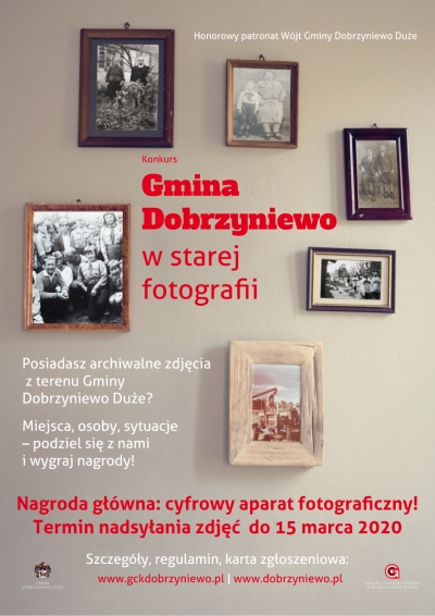 Zachęcamy mieszkańców gminy Dobrzyniewo Duże do wzięcia udziału w konkursie fotograficznym pn. "Gmina Dobrzyniewo w starej fotografii". Regulamin konkursu i karta zgłoszeniowa w załączniku poniżej.