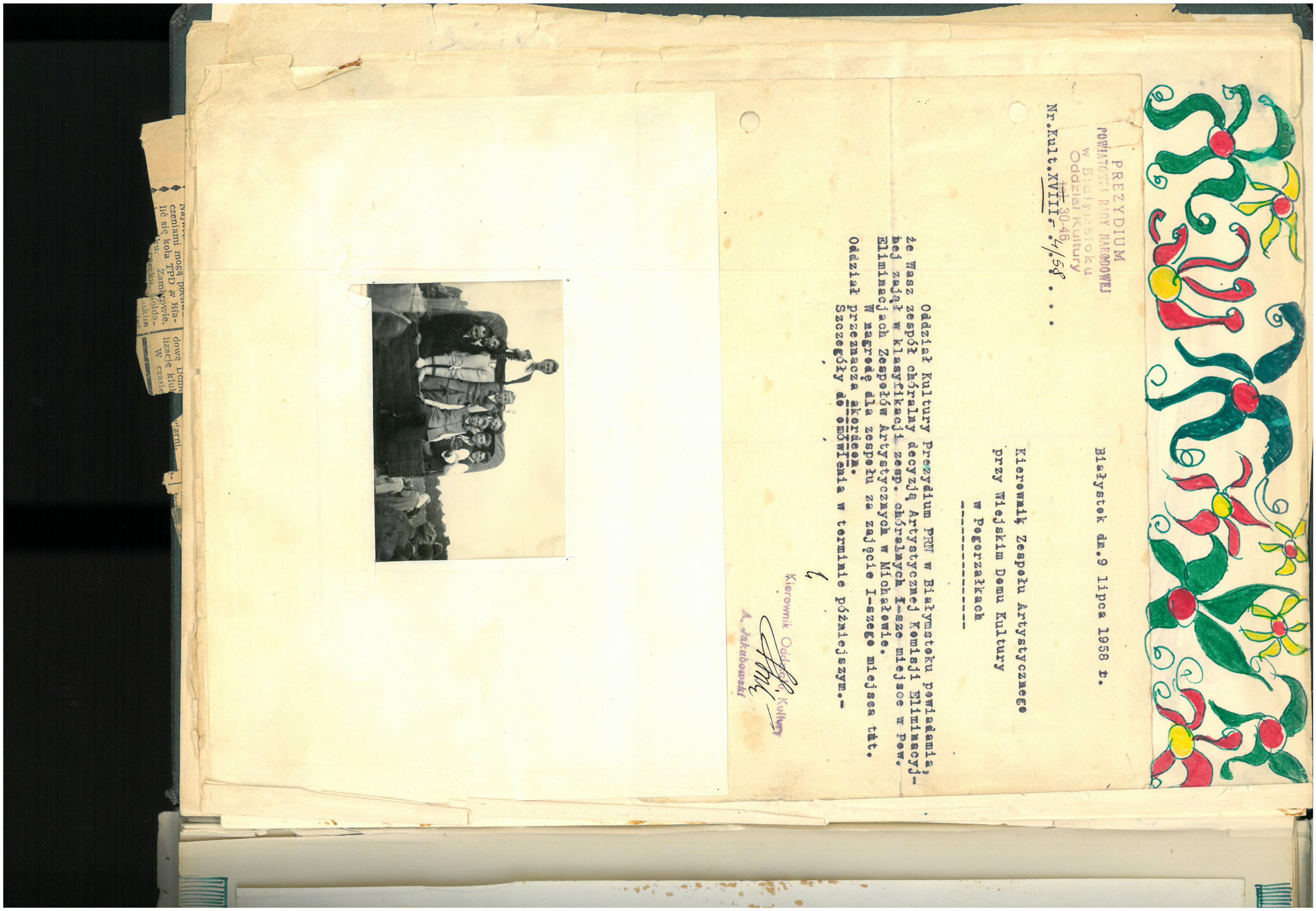 Za swoje zaangażowanie w pracę włożoną w działalność zespołu śpiewającego i teatralnego, otrzymałam 25.08.1956 r. dyplom z Prezydium Wojewódzkiej Rady Narodowej w Białymstoku za „krzewienie oświaty i kultury na terenie wsi białostockiej”.