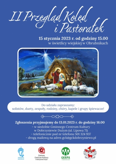 15 stycznia 2023 r. od godziny 15.00 w świetlicy wiejskiej w Obrubnikach