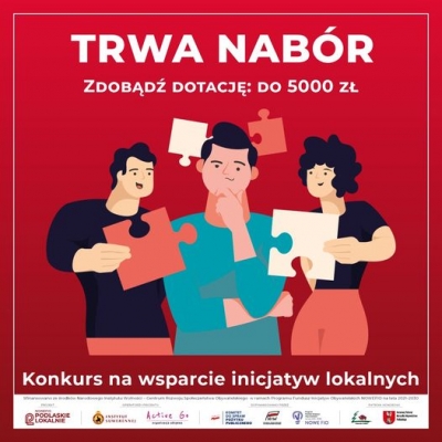 Jesteś osobą ambitną i lubisz działać społecznie? Mieszkasz w województwie podlaskim? W takim razie mamy znakomitą wiadomość! Już wkrótce rozpocznie się nabór na mikrodotacje, dzięki któremu zrealizujesz swoją inicjatywę! Operatorzy projektu Podlaskie Lokalnie - Fundacja Instytut Suwerennej oraz Spółdzielnia Socjalna „Active Go” w Białymstoku zachęcają do składania wniosków mikrodotacyjnych w ramach Konkursu na Wsparcie Inicjatyw Lokalnych.