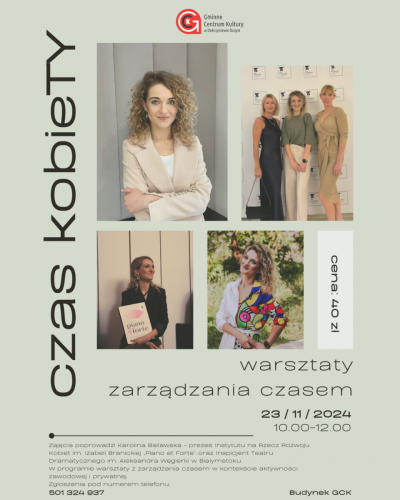 Wyjątkowe spotkanie pełne kobiecej energii, prowadzone przez Prezes Fundacji wspierającej kobiety w rozwoju osobistym i zawodowym. Tematem przewodnim tego wydarzenia będzie zarządzanie czasem – klucz do harmonii między życiem zawodowym a prywatnym. Uczestniczki otrzymają praktyczne porady i techniki organizacyjne, które pomogą im lepiej planować i wykorzystywać każdą chwilę w codziennym życiu