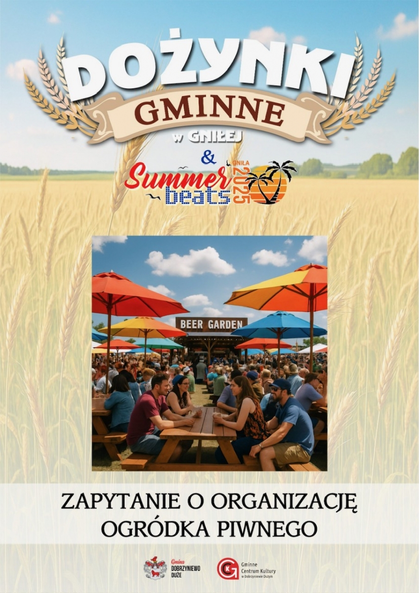 Gminne Centrum Kultury w Dobrzyniewie Dużym ogłasza zapytanie ofertowe dotyczące organizacji ogródka piwnego podczas Dożynek Gminnych, które odbędą się 24 sierpnia 2025 roku w miejscowości Gniła.
