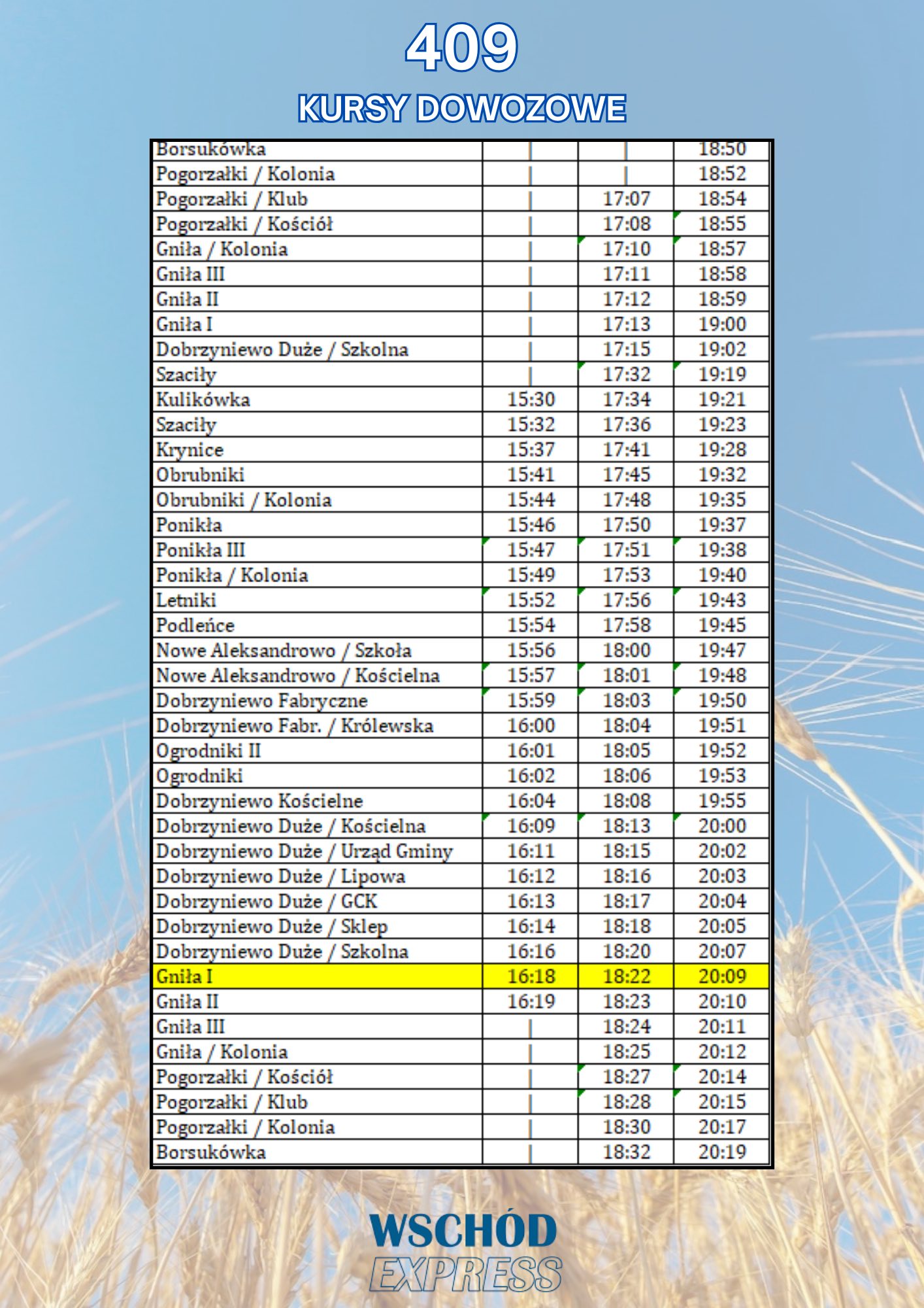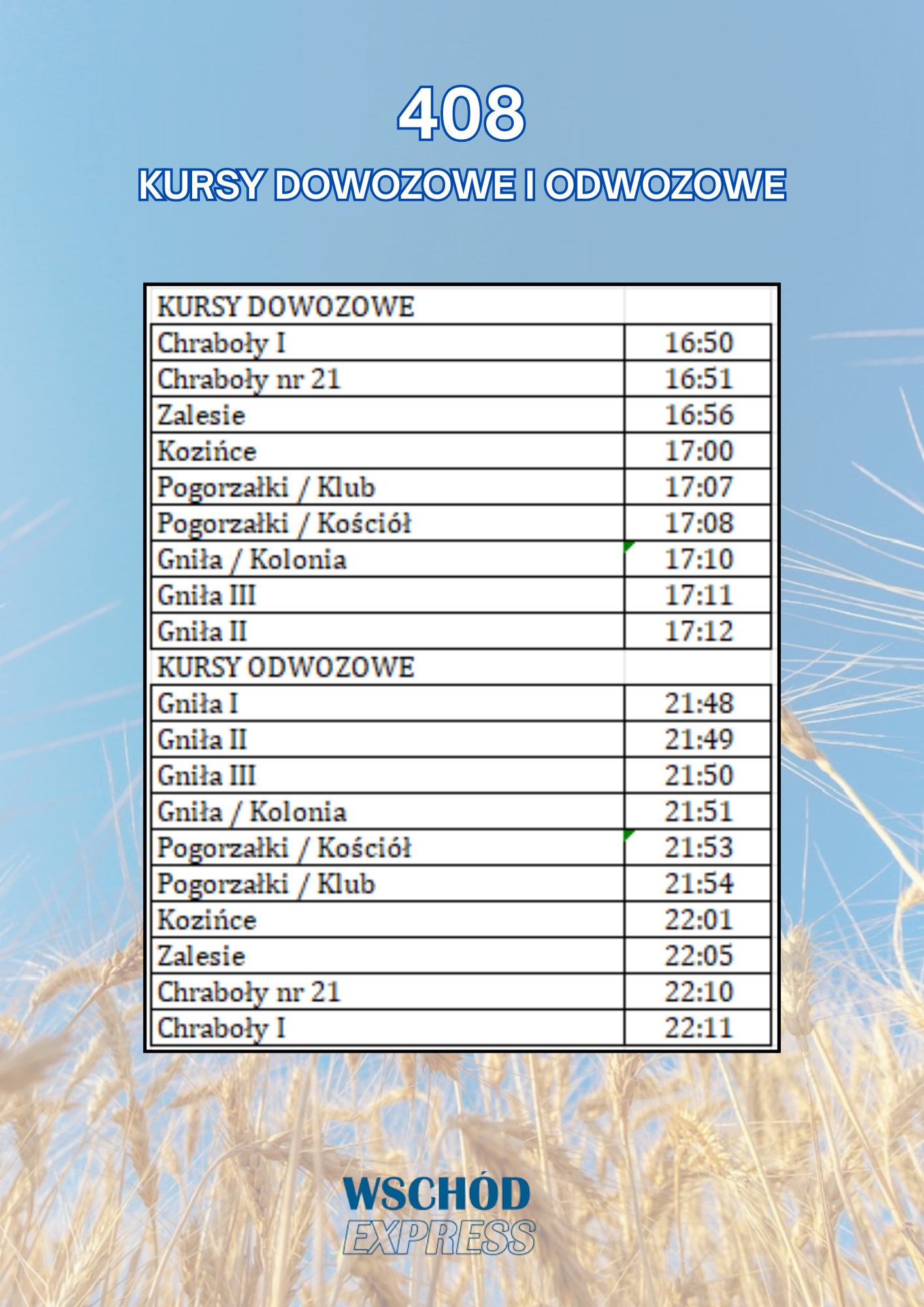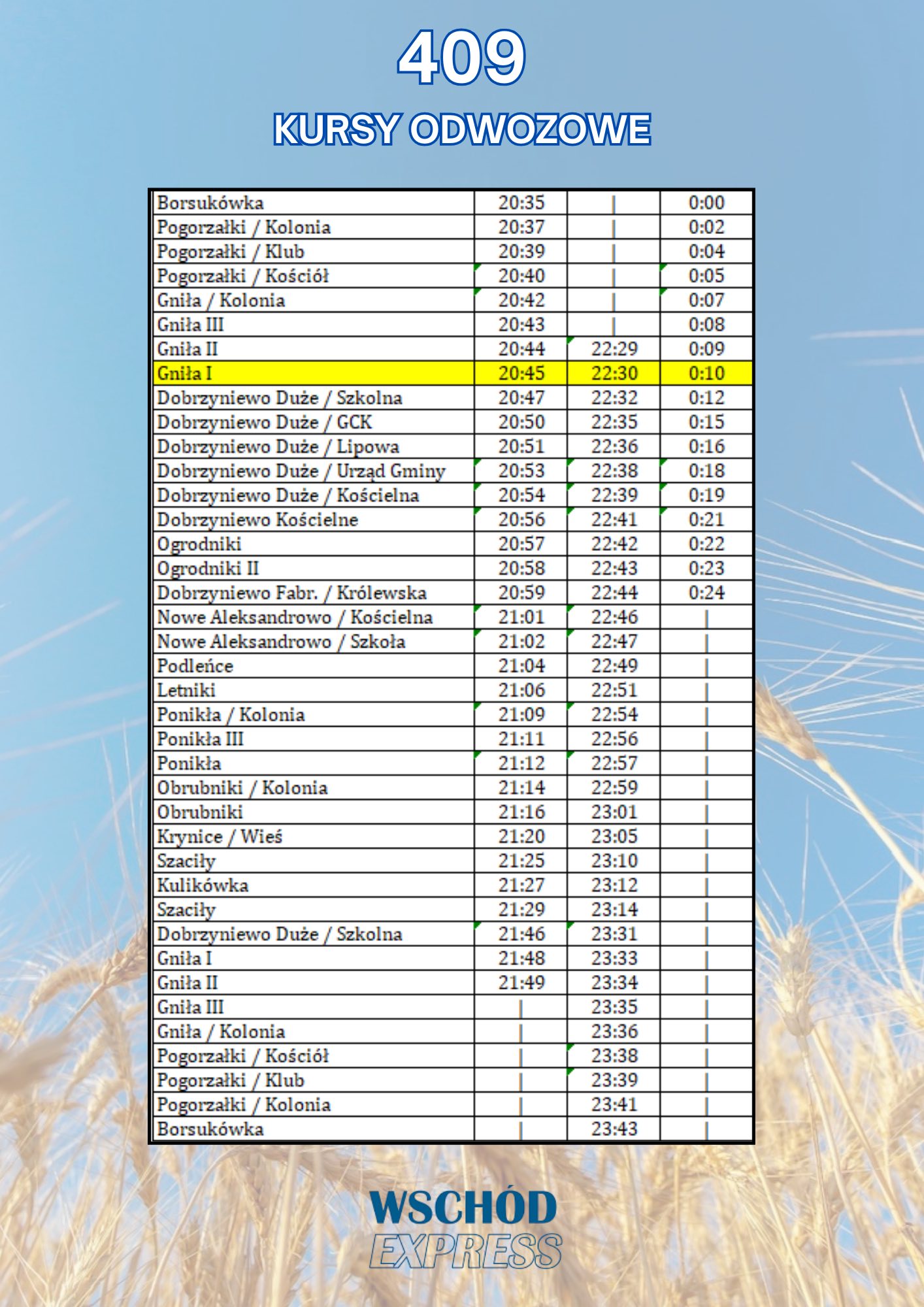 Dzięki wsparciu firmy Wschód Express, na wydarzenie będzie można dotrzeć bezpłatnym transportem. Autobusy będą kursować zarówno w stronę imprezy, jak i po jej zakończeniu, aby wszyscy mogli bezpiecznie wrócić do domów. Załączamy rozkład dowozów i odwozów.