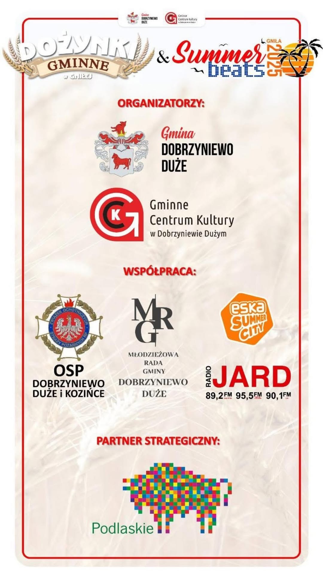 Zachęcamy, aby spędzić z nami cały dzień – od tradycyjnej części dożynkowej, aż po energetyczne zakończenie podczas Summer Beats!